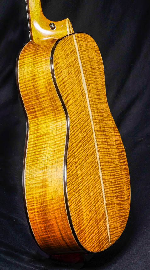 I primarily use Sitka spruce for my soundboards, as it consistently provides excellent tone. I’ve also developed a relationship with its unique properties which allows me to bring out its full potential. If you prefer to go in another direction, other species of spruce, as well as cedar and redwood are available.