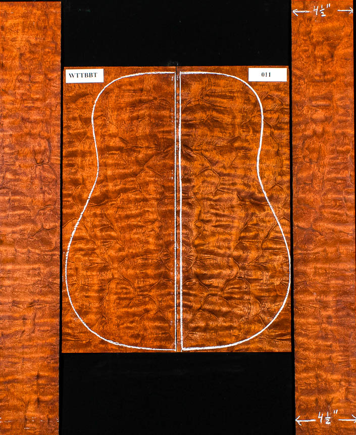 These sets offer exceptional beauty, and are examples of the most sought after tonewood. Like all my wood, they will lead to wonderful sounding guitars, and some are of such rare quality they will make a guitar for the ages. The added cost is indicated for each set. For those interested in “The Tree” Honduras Mahogany sets, see this VIDEO.